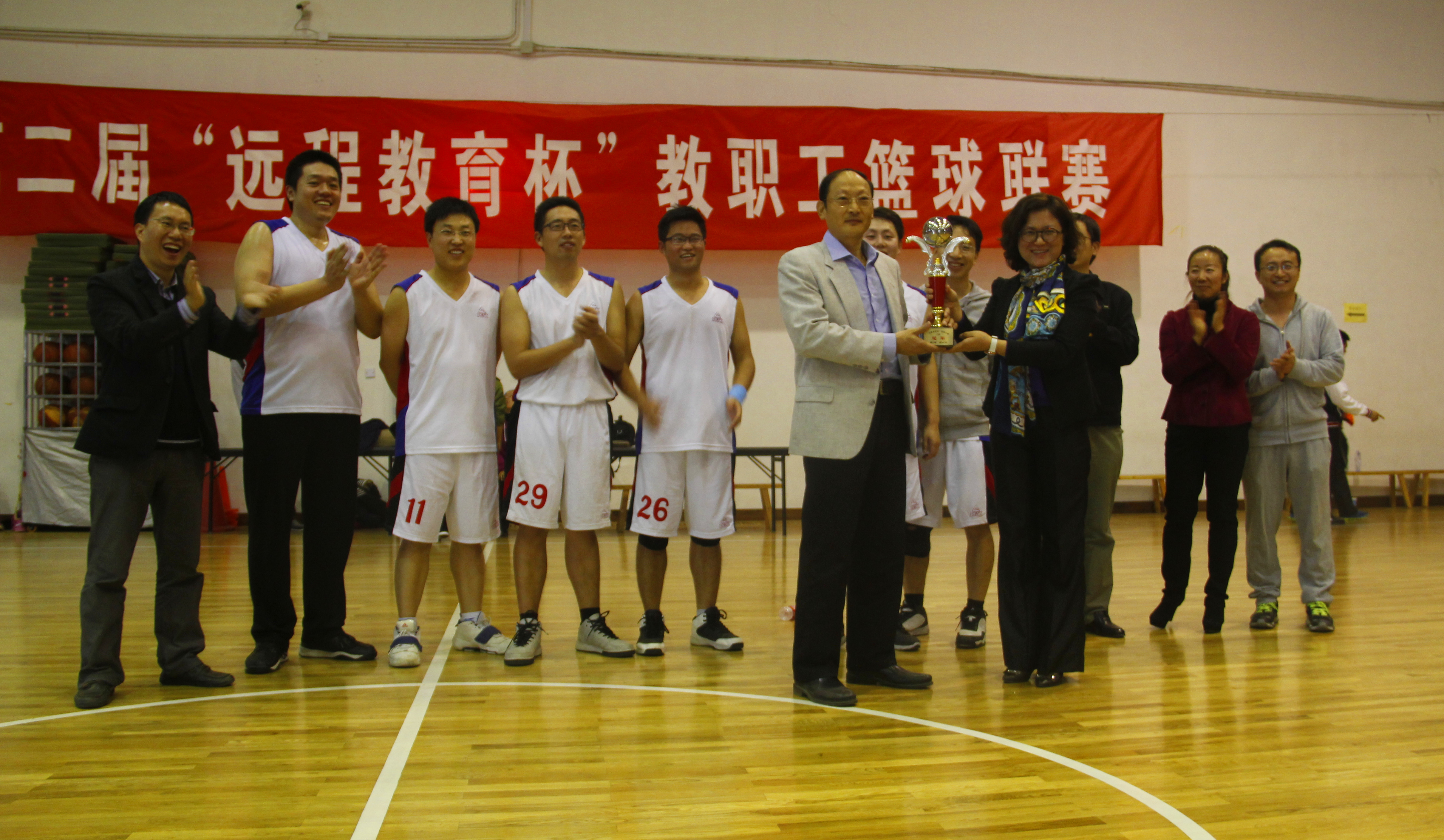 第二届“远程教育杯”教职工篮球联赛乙组冠军奖杯。