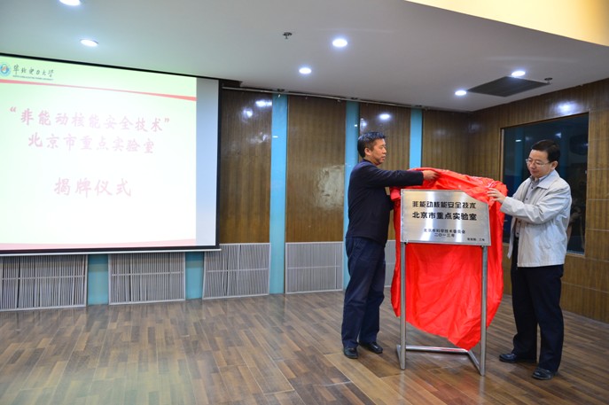 在各位领导、专家及核学院广大师生的注视下,国家能源局核电司陈飞副司长与北京市科委杨仁全处长为“非能动核能安全技术”北京市重点实验室揭牌。