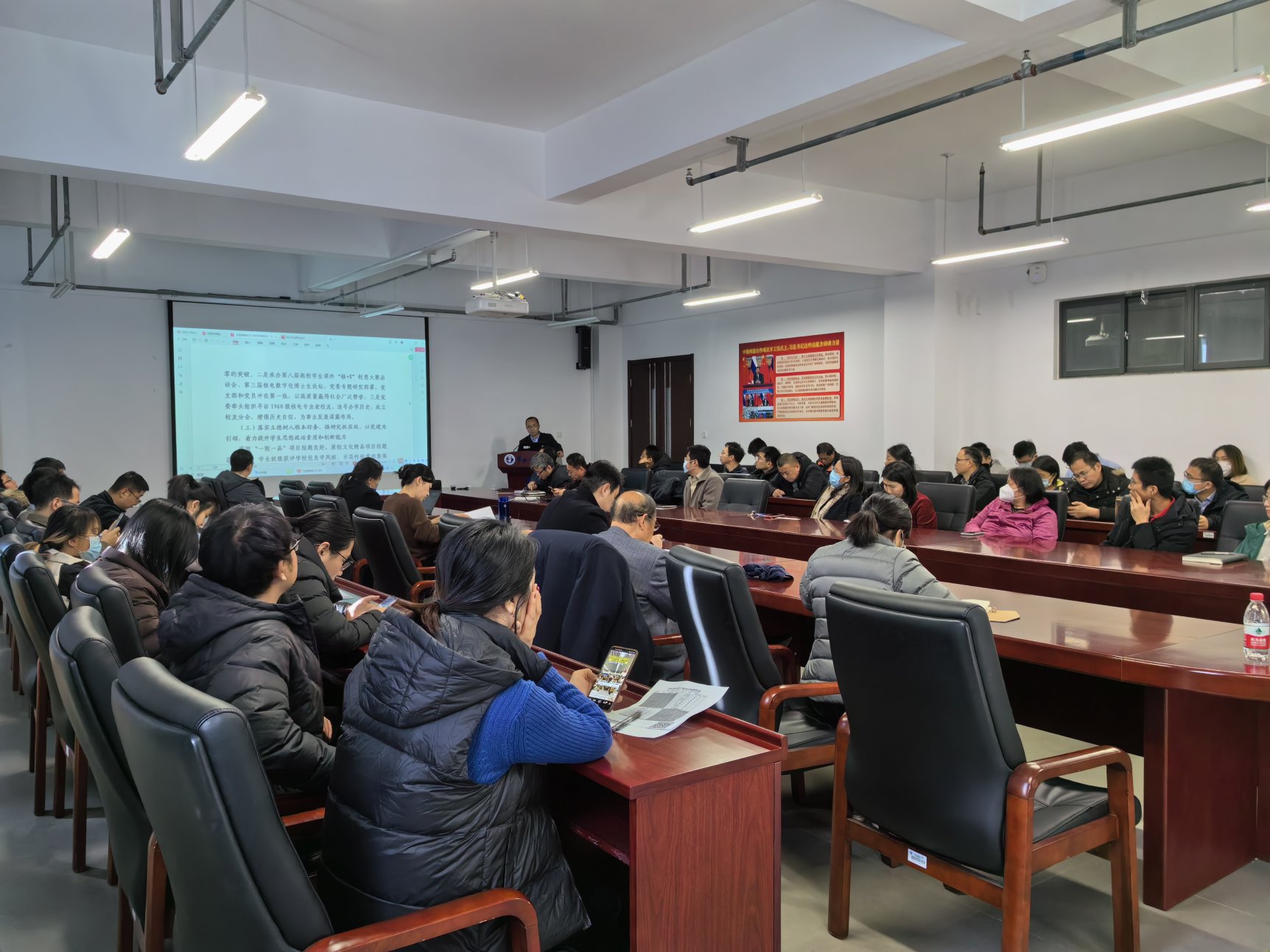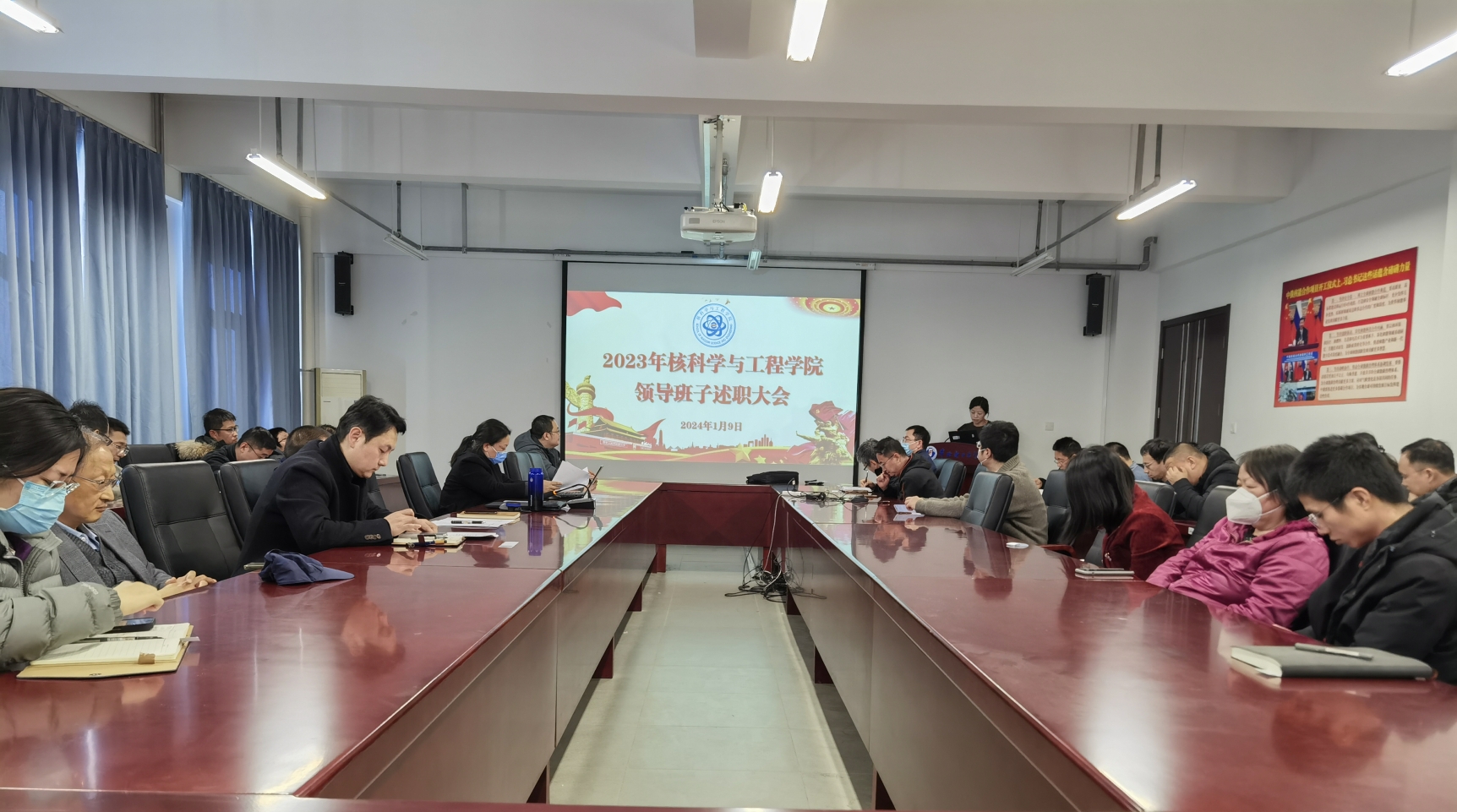 1月9日中午,情色小说 召开领导班子和处级干部考核述职大会,学院全体教职工参加会议。会议由学院党委书记李林主持。
