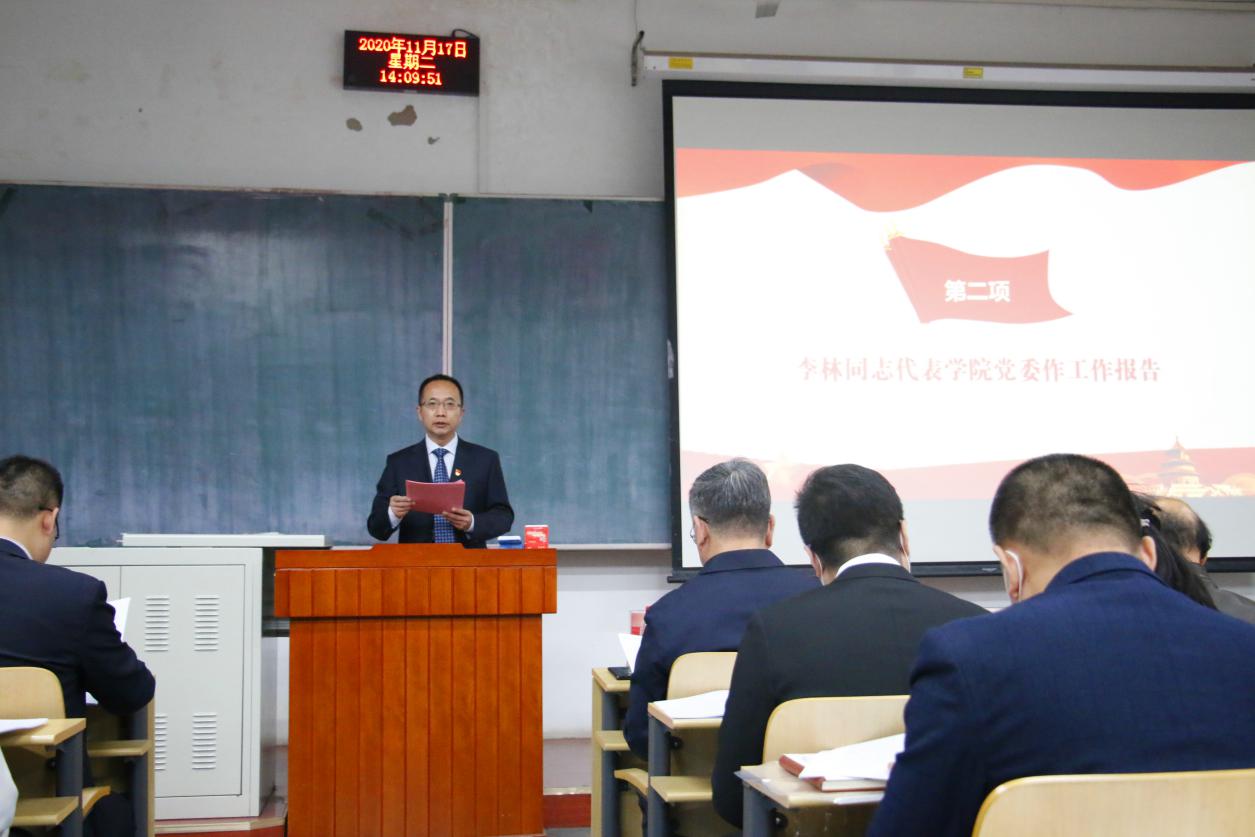 学院党委书记李林代表上一届委员会作了题为《凝心聚力 开拓进取 为建设高水平研究型学院而努力奋斗》的工作报告,全面总结回顾了本届党委履职以来学院党的建设和事业发展情况。报告指出,学院党委在校党委的领导下,积极发挥党委政治核心作用,把大局、管方向、做实事,党政领导齐心协力,团结和带领全院师生共同努力奋斗。五年来,作为学校2007年新组建的特色性学院,核学院高起点、高标准、创一流的建设定位取得了新的突破和显著的成效。同时报告也指出了学院党的建设和事业发展中存在差距和不足,分析了学院发展面临的形势与挑战,谋划和确定了今后的工作重心和目标。