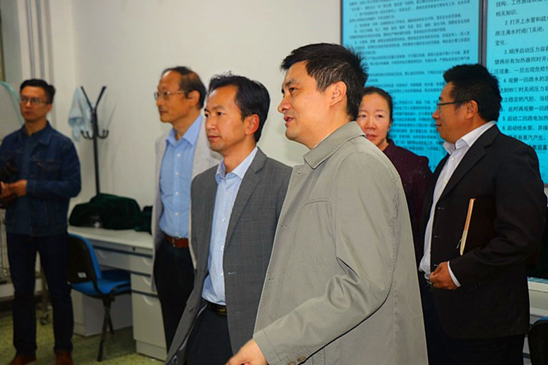 何华书记一行参观了学院的部分教学和科研实验室,包括“ 核动力工程全范围虚拟仿真”国家级实验教学中心、北京市非能动核能安全技术重点实验室、国家能源核电软件重点实验室、核电设备抗震实验室、核电厂虚拟现实与辐射场可视化实验室、核电厂实物与动态演示实验室等。参观过程中,何华书记认真听取了学院领导、实验员对实验室发展基本情况、实验设备用途及实验课程开设、科学研究开展等情况的介绍。