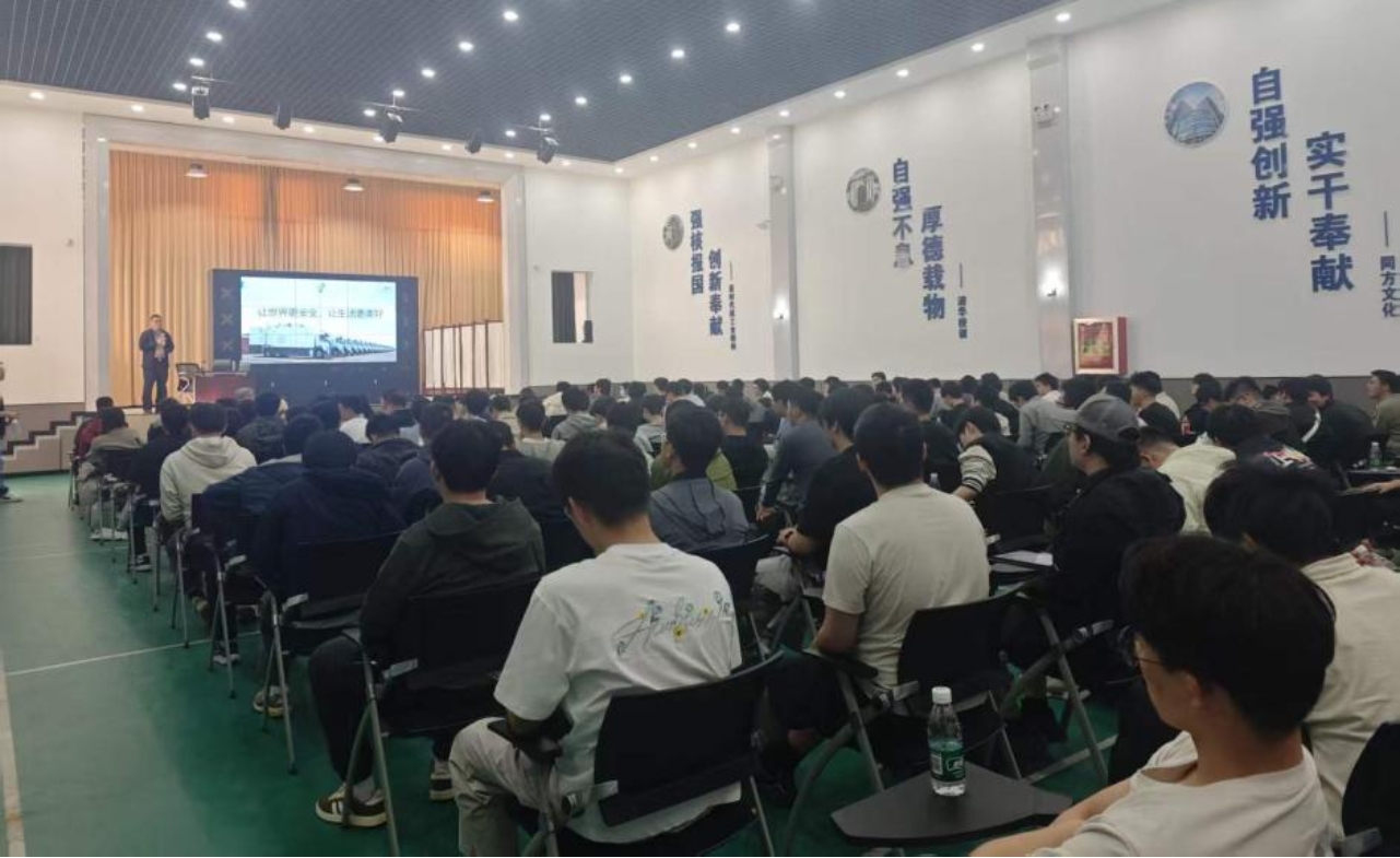 活动伊始,许艳伟为师生带来专题讲座,围绕核技术在安检、工业检测等领域的应用展开深入讲解,并分享行业发展趋势与人才需求。讲座中,许艳伟结合车载移动检查系统、工业CT等核心产品,剖析了加速器技术、辐射成像原理在实际场景中的创新应用,让师生对“核技术+”的广阔前景有了更直观的认知。