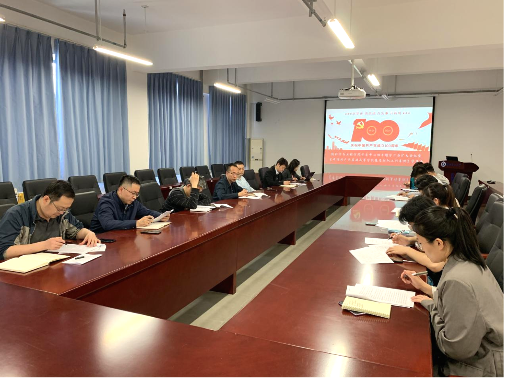 党委在主G209召开理论学习中心组(扩大)学习会,专题学习《中国共产党普通高等学校基层组织工作条例》(以下简称《条例》),学院党委中心组成员、全体师生支部书记参加会议。会议由学院党委书记李林主持。