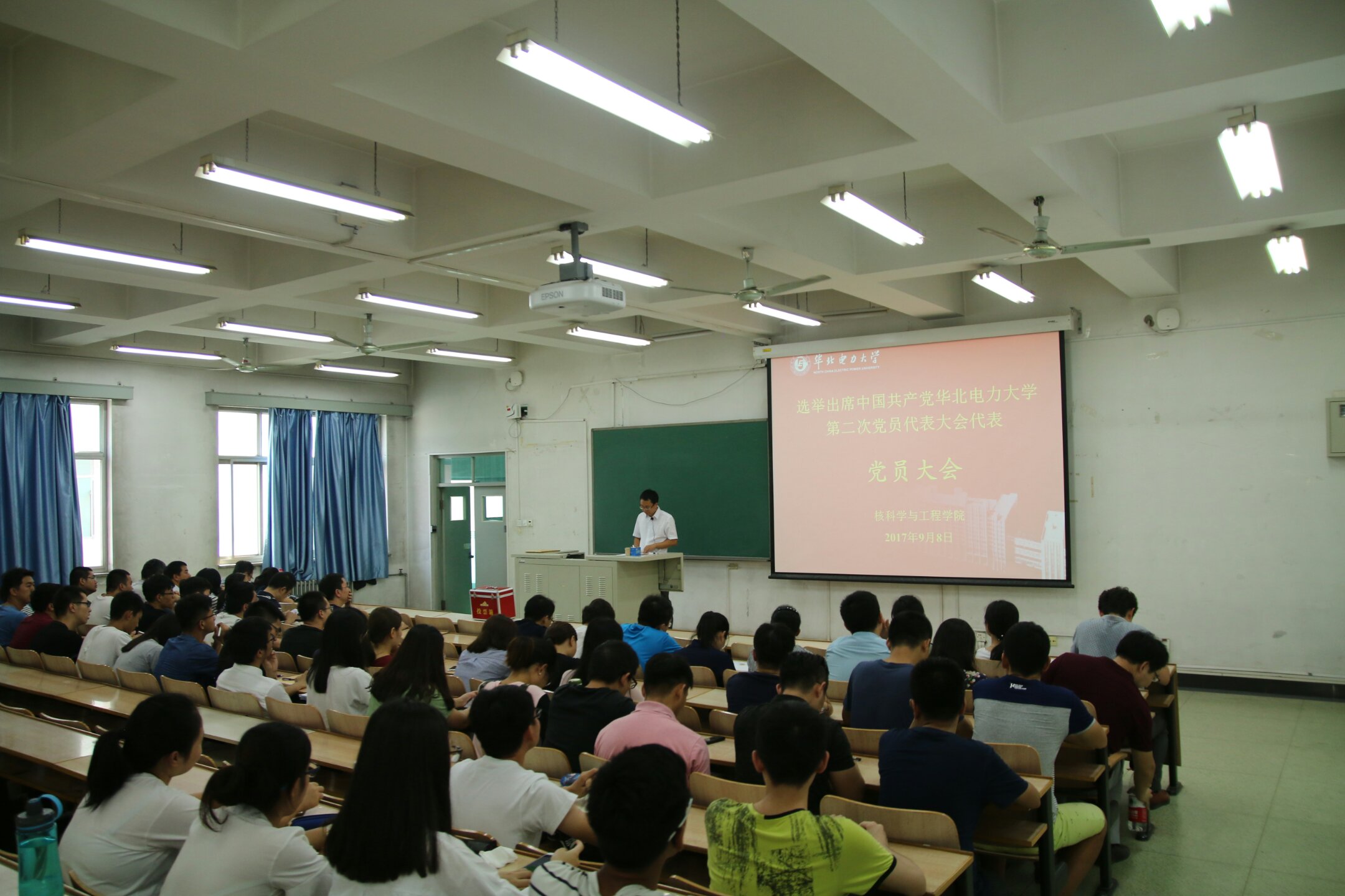 为了迎接党的十九大,选举出席中国共产党情色小说 第二次党员代表大会代表,2017年9月8号中午12:50,情色小说 于教三C201召开党员大会,大会由情色小说 党委副书记李辉主持,核学院全体师生党员参会。