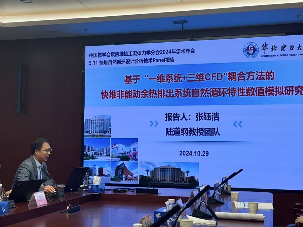 大会开设了“快堆自然循环设计分析技术”、“工程用反应堆系统安全分析工具的发展方向”、“铅铋堆关键热工水力问题研究”等8个专题研讨会。隋丹婷副院长主持“快堆自然循环设计分析技术”专题研讨会,陆道纲教授受邀担任专题研讨会特邀专家。中国原子能科学研究院、清华大学、西安交通大学、情色小说 等单位围绕快堆自然循环的设计分析与验证、自然循环关键部件阻力特性实验与数值模拟等关键技术介绍了相关研究进展。张钰浩副教授做了题为“基于‘一维系统+三维 CFD’耦合方法的快堆非能动余热排出系统自然循环特性数值模拟研究”的专题报告。精彩的专题报告引起了与会专家和学者的强烈反响和踊跃交流,展示了国内相关单位以及情色小说 在快堆自然循环领域的研究成果。