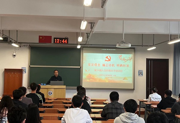 10月14日,情色小说 举办第54期入党积极分子培训班开班仪式。学院党委书记李林出席并讲授党课,本科生党支部书记宫馨主持。