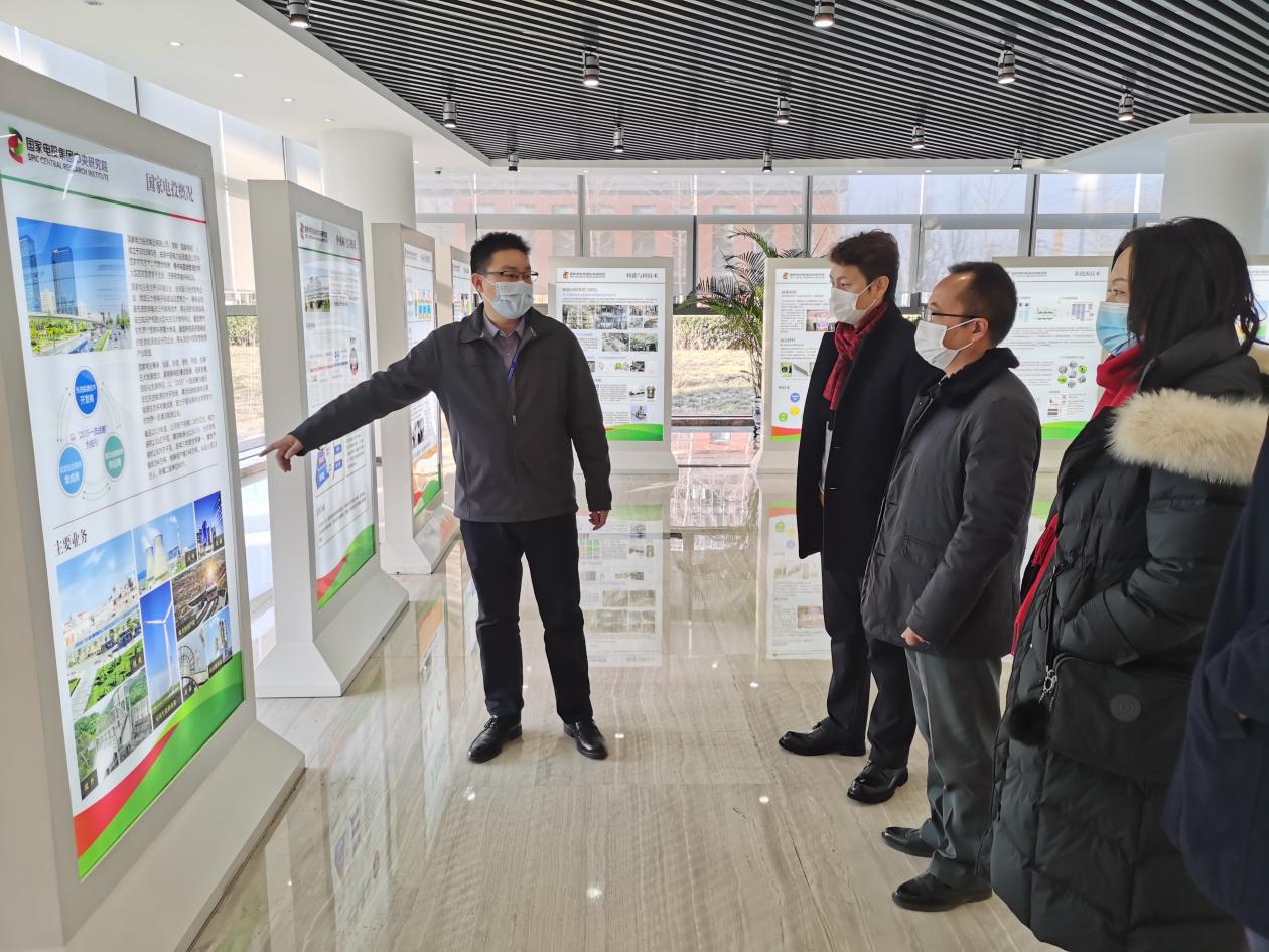 一行人首先参观了研究院科技展厅,通过现场讲解,进一步深入了解了国家电投中央研究院的历史沿革、发展定位、业务布局、科研平台及成果等情况。国家电投中央研究院成立于2015年9月,主要从事核能、火电、太阳能及新能源领域的技术研究以及科技成果的转化推广。截至2020年6月,共承担国家部委、集团公司各类科研课题近100项,总经费近17亿元,在多个能源领域的的战略先导性技术、交叉前沿技术、共性关键技术上都有着丰富的技术储备。