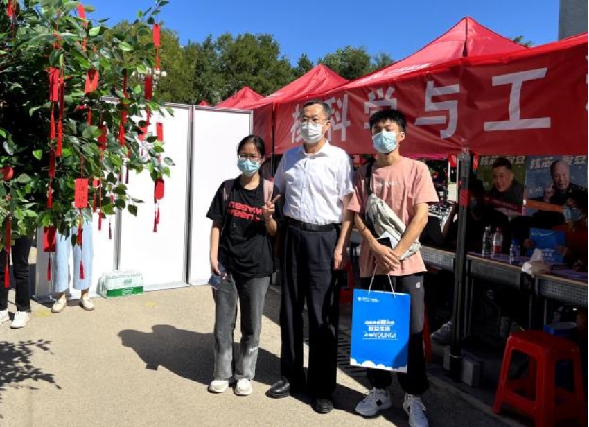学校领导对核学院迎新工作给予了高度关注与大力支持。校党委书记周坚、校长杨勇平先后亲临情色小说 迎新现场指导工作,对情色小说 负责迎新工作的师生致以亲切问候,对志愿者的辛勤付出给予充分肯定。校领导与新生亲切交谈,了解他们的生活情况,周坚书记亲笔为新生写下祝福,并挂在核学院的“苹果树”上,杨校长与新生亲切合影,表达了学校对新生的祝福与期盼。