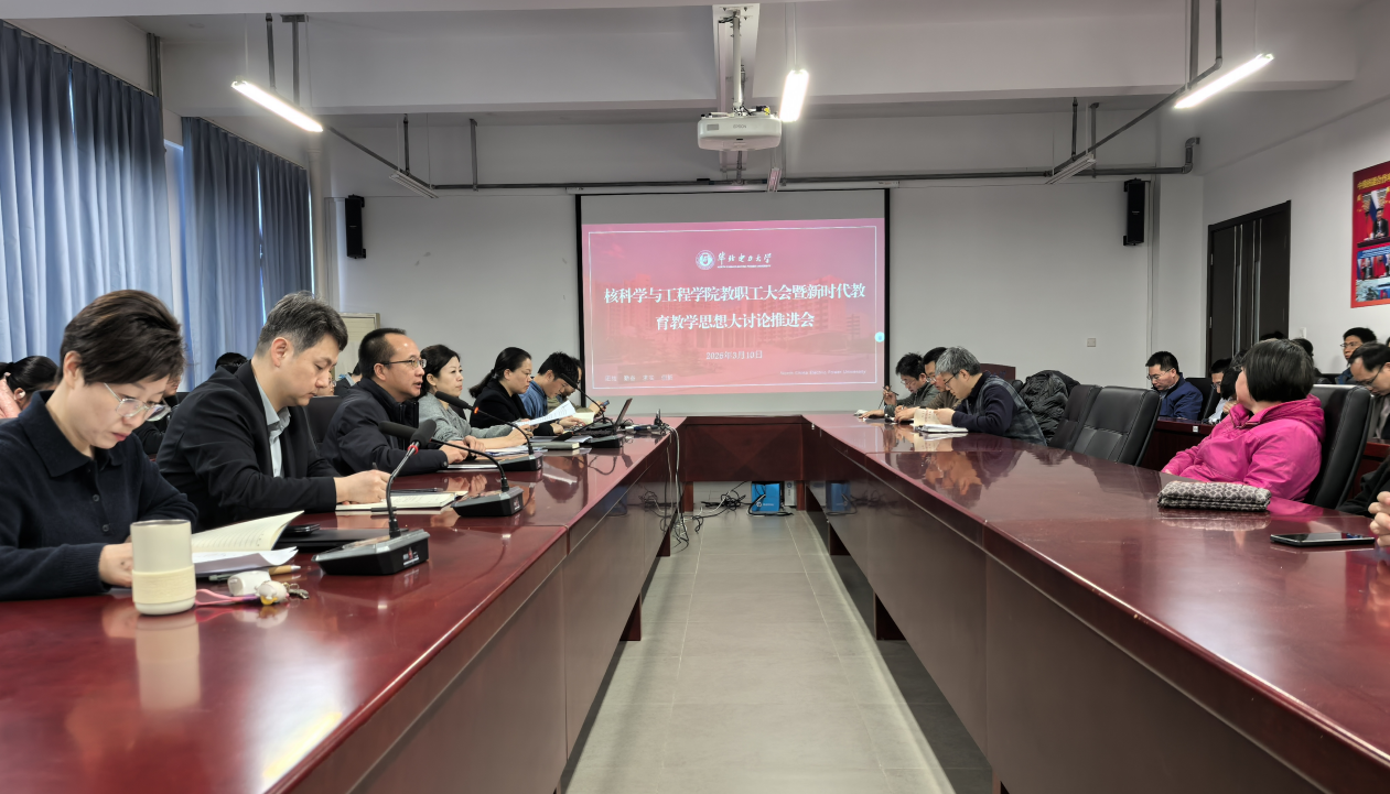 学院院长刘洋传达了学校第七届教职工代表大会第八次会议精神,重点解读了校长年度工作报告和校党委书记闭幕式上的讲话精神。结合学院实际,刘洋对新学期重点工作进行部署,一是要抢抓机遇,前瞻布局,优化学科布局,聚焦先进核能、低碳技术等未来能源,凝练特色研究方向,争取重大科研成果;二是要强化有组织科研,推动“核能+人工智能”前沿领域跨界融合,提升学院核心竞争力;三是要深化改革,以教育教学大讨论为契机,系统推进专业建设、课程改革和人才培养模式创新,确保新学期开好局、起好步。